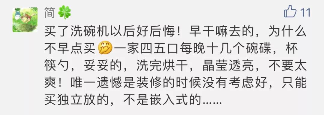 亲戚朋友如果问我装修问题,我都会推荐洗碗机,现在还有很多人纠结,特别是年纪大点的,都会觉得几个碗而已,随手就洗掉了。但年轻人接受的越来越多,我觉得若干年后,洗碗机在国内也会和洗衣机一样普及。